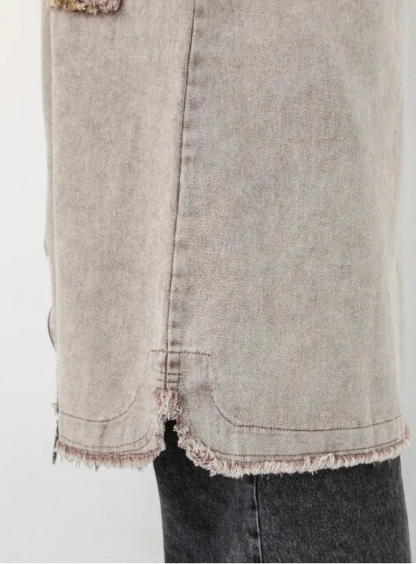 Шикарнейший кардиган выполнен из плотной джинсы , колом не стоит, дышит, пластичная .
