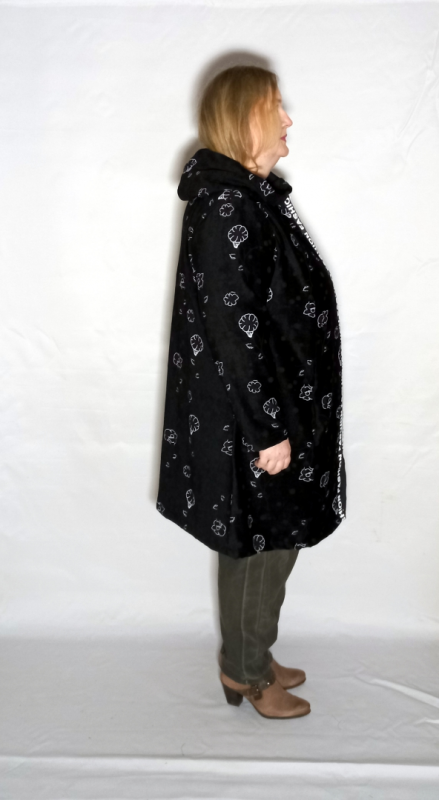Стильный кардиган-ветровка выполнен из шанель-велюр  полотна с интересным принтом.  Для отделки использовали тесьму с надписями.