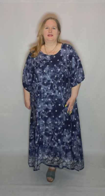 Легкое, игривое, летнее платье выполнено из штапеля-джинс( 100% вискоза). Ткань легкая, пластичная, не эластичная, хорошо драпируется, умеренно мнется, хорошо дышит и пропускает воздух.Это "вареный" штапель, чем обусловлены разводы на ткани, а рисунок, имитирующий вышивку, нанесен принтом. Принт можно гладить, не прилипает