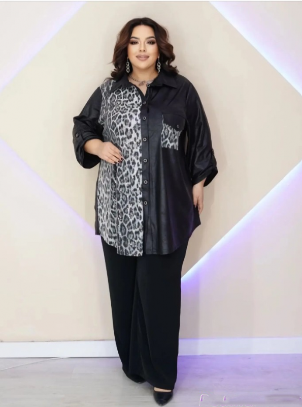 Стильная, нарядная рубашка выполнена из сочетания двух видов трикотажа.