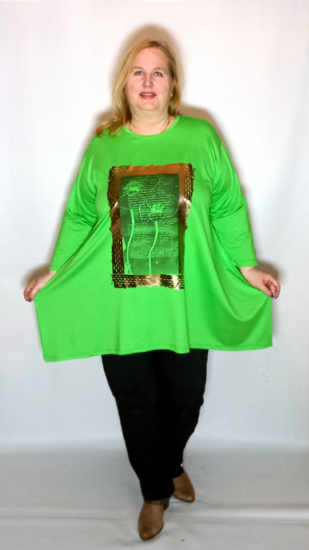 Удлиненная туника А-силуэта выполнена из высококачественного, трикотажного полотна с 95% содержанием вискозы.