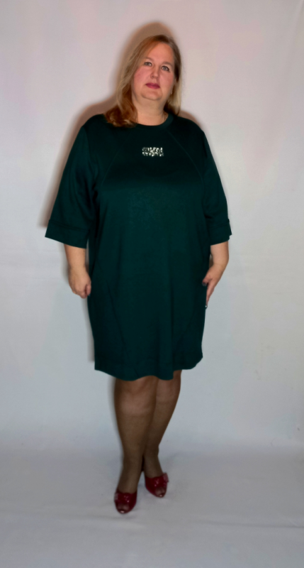 Лаконичное, но элегантное платье туника выполнено из плотного трикотажа. Трикотаж очень приятный  наощупь, плотненький, хорошо скрывает шероховатости фигуры, эластичный.