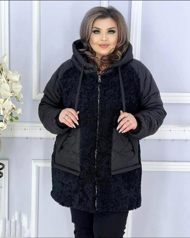 Куртка выполнен из драпа - барашек и стеганной , плащевой ткани.