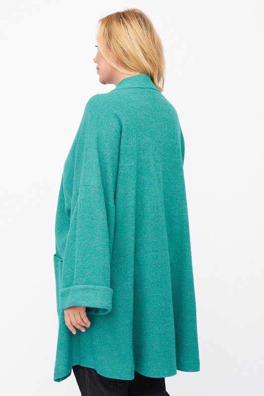Демисезонное пальто выполнено из однотонного полотна с содержанием шерсти (30%). Изделие без подклада и утеплителя.